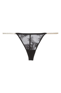 Crystal trim glimmers along the sides of this sheer G-string made of soft lace. Cotton-lined gusset 78% nylon, 22% spandex Hand wash, dry flat Imported