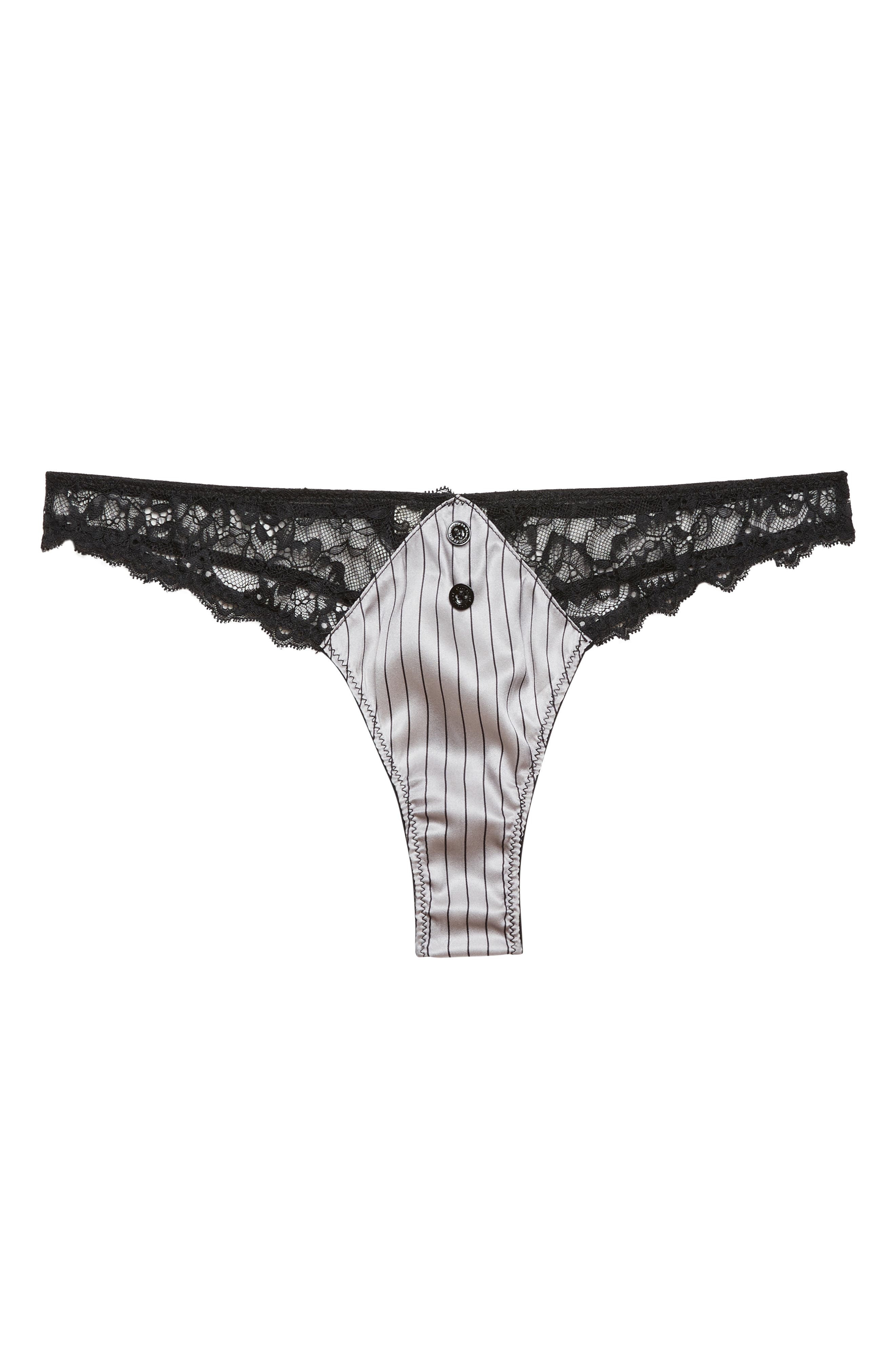 Stretch-enhanced silk adds luxurious softness to this tuxedo-inspired thong featuring contrast lace trim for a look that was meant to be seen. Cotton-lined gusset 92% silk, 8% elastane with 61% recycled nylon, 20% nylon, 19% elastane contrast Hand wash, dry flat Imported