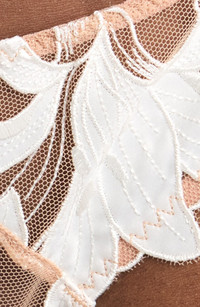 Beautifully embroidered lilies with scalloped edges veil this barely there thong finished with a mesh back. Cotton-lined gusset 100% polyester with 85% polyamide, 15% elastane and 92% silk, 8% elastane contrast Hand wash, dry flat Imported