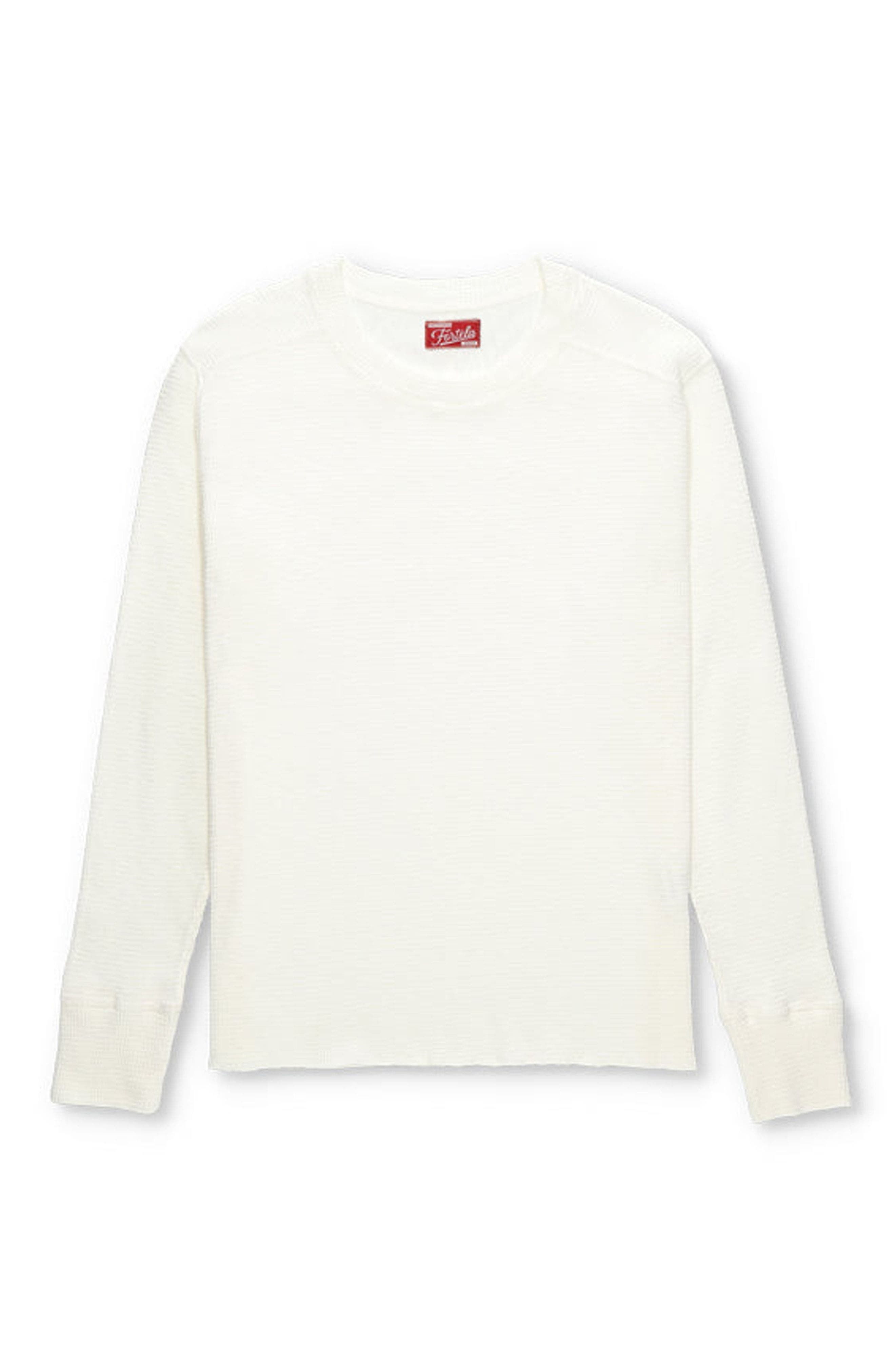 The GEREMIA is a long-sleeved shirt. The garment is made of 100% WAFFLE cotton jersey. Waffle fabric is recognizable by its distinctive honeycomb texture, which provides added softness. This garment is made in Italy from 100% cotton. The entirely Italian production ensures a manufacturing excellence that is reflected in every detail of the garment and underlines how it was created to last over time and evolve along with the wearer. The fit of the JEREMIAH is regular. On the back, the iconic Fortela stitching made with orange thread embodies the brand's philosophy of creating each garment to last and age with the wearer, carrying with it a piece of history revisited in the light of Alessandro Squarzi's inspiration and research. Crew neck sweater Waffle Jersey Ribbed sleeve profiles Made in Italy -The model wears a size L and is 185cm tall