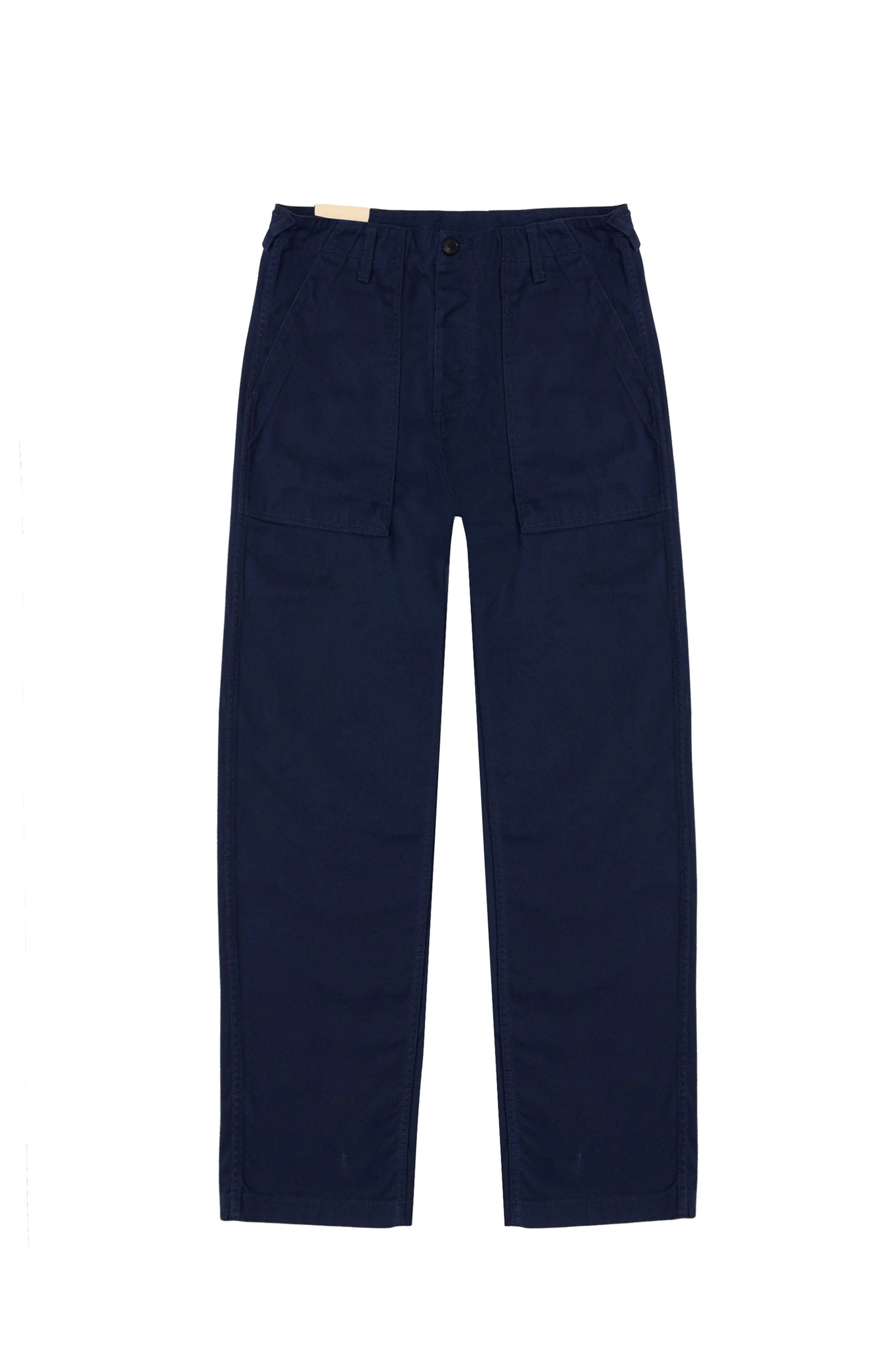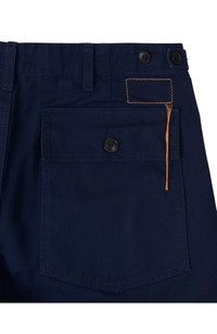 The Newfatigue pants draw inspiration from the military era, featuring large front patch pockets and a straight leg. Fortela revives this timeless design with durable HBT cotton, known for its resistance. Details include reinforced belt loops and signature orange stitching. A blend of history and contemporary style, these pants offer both comfort and a distinctive look, perfect for versatile styling. 100% Cotton Regular Fit Applied Front Pockets Applied Back Pockets Made in Italy