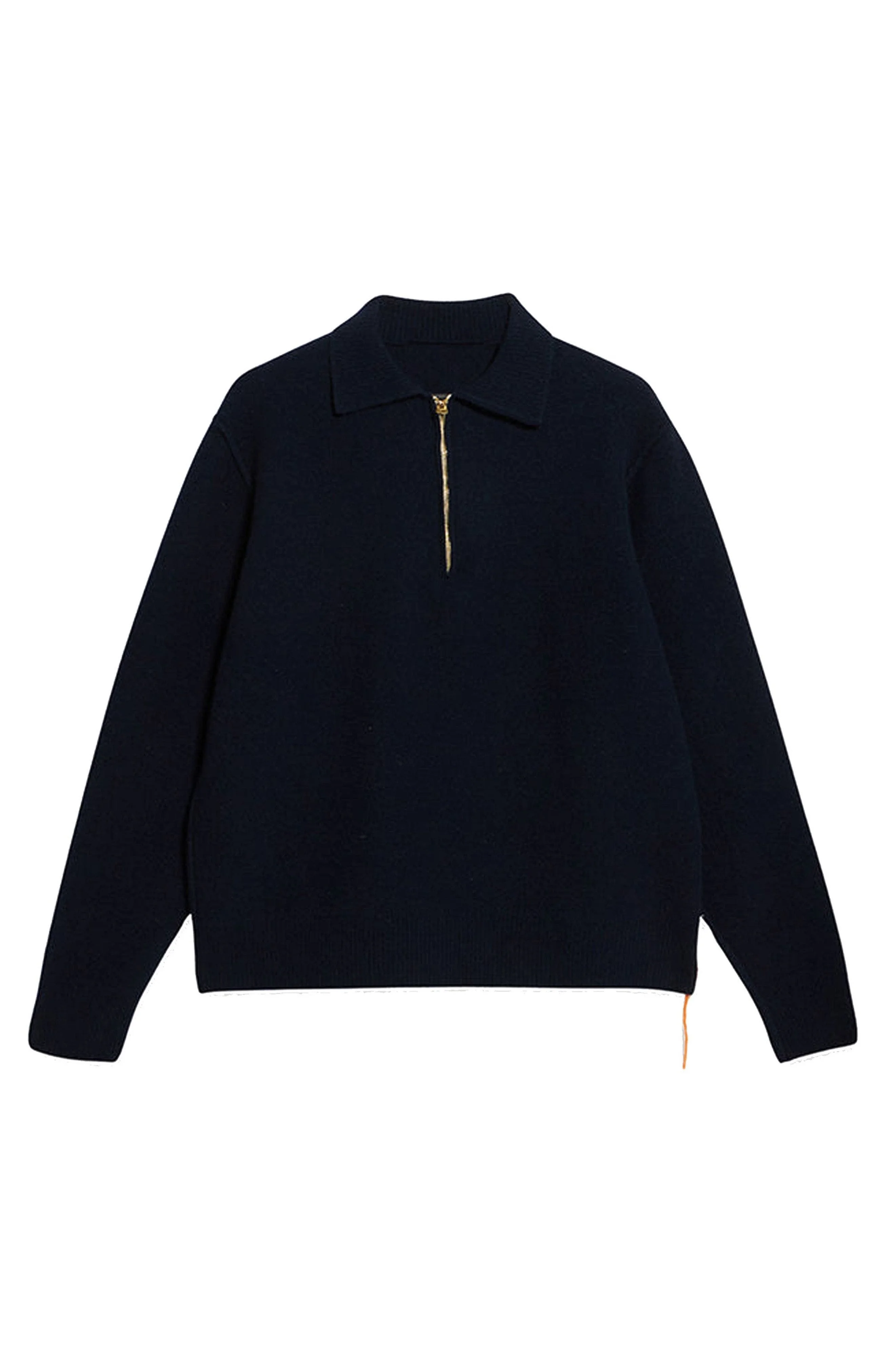 The YALE sweater by Fortela is made of 100% wool and stands out for its essential and contemporary design that makes it ideal for a casual but refined look. This piece stands out for its classic-cut collar, which adds a touch of refinement to the apparent simplicity of the sweater. The practical and functional gold-toned zip closure offers aesthetic balance and ease of use. The back of the shirt features a clean line and a minimalist design that highlights the quality of the material and the care in its construction. Visually completing the YALE shirt is the Fortela orange stitching detail, a silent logo, almost invisible but evident to the most attentive, which enriches and embellishes this item of clothing. The fit is designed to ensure comfort without sacrificing the elegance of the shapes. Available in a colour palette ranging from melange, Navy blue to military green, the YALE sweater offers multiple pairing opportunities, allowing the wearer to express their personal style, always maintaining a distinctive imprint. The YALE sweater confirms itself as an essential but distinctive garment, which lends itself well to becoming a wild card in the male wardrobe. 60s inspired zip up collared sweater Talon zip closure detail Long sleeves 100% Extrafine wool Made in Italy -The model wears a size L and is 185cm tall
