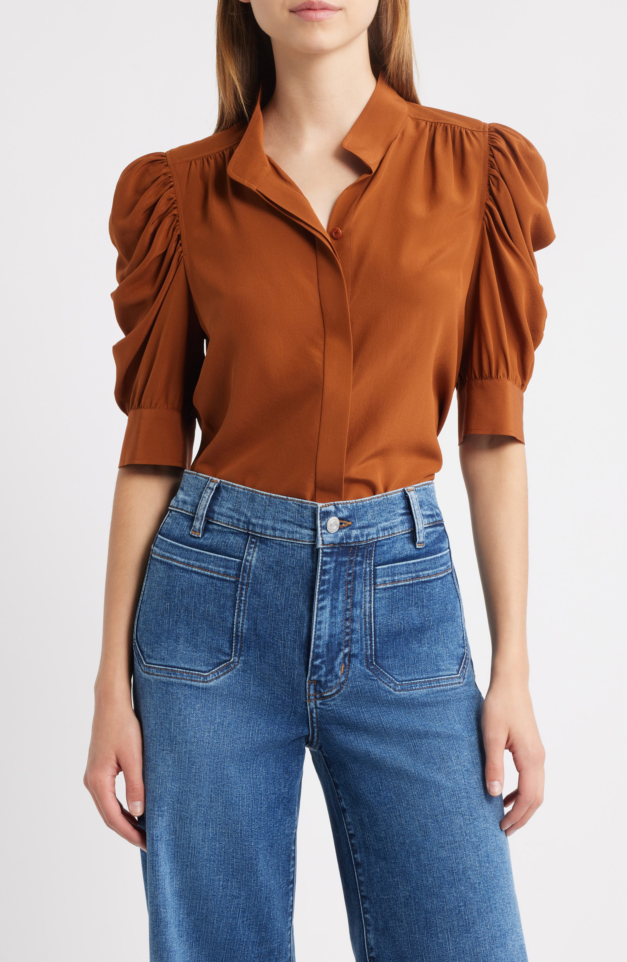 FRAME Gillian Silk Button-Up Shirt in Rust at Nordstrom