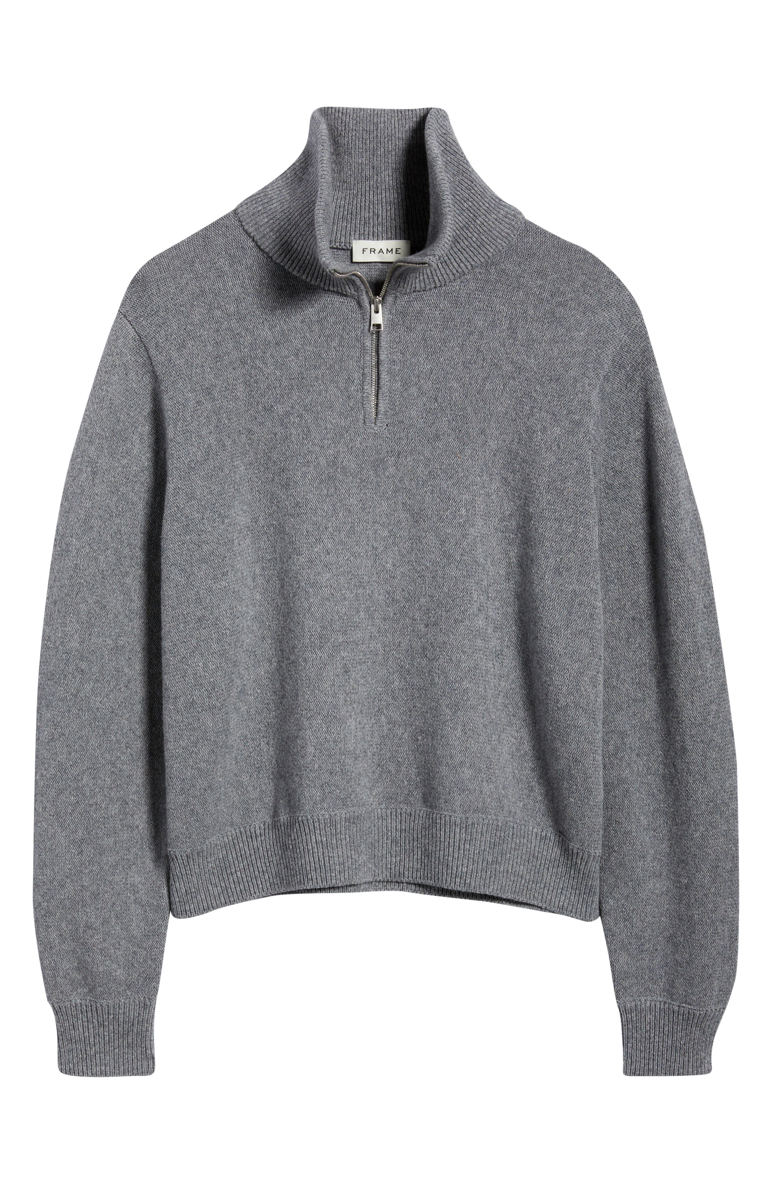 FRAME Half Zip Wool & Cotton Sweater in Grey Melange at Nordstrom