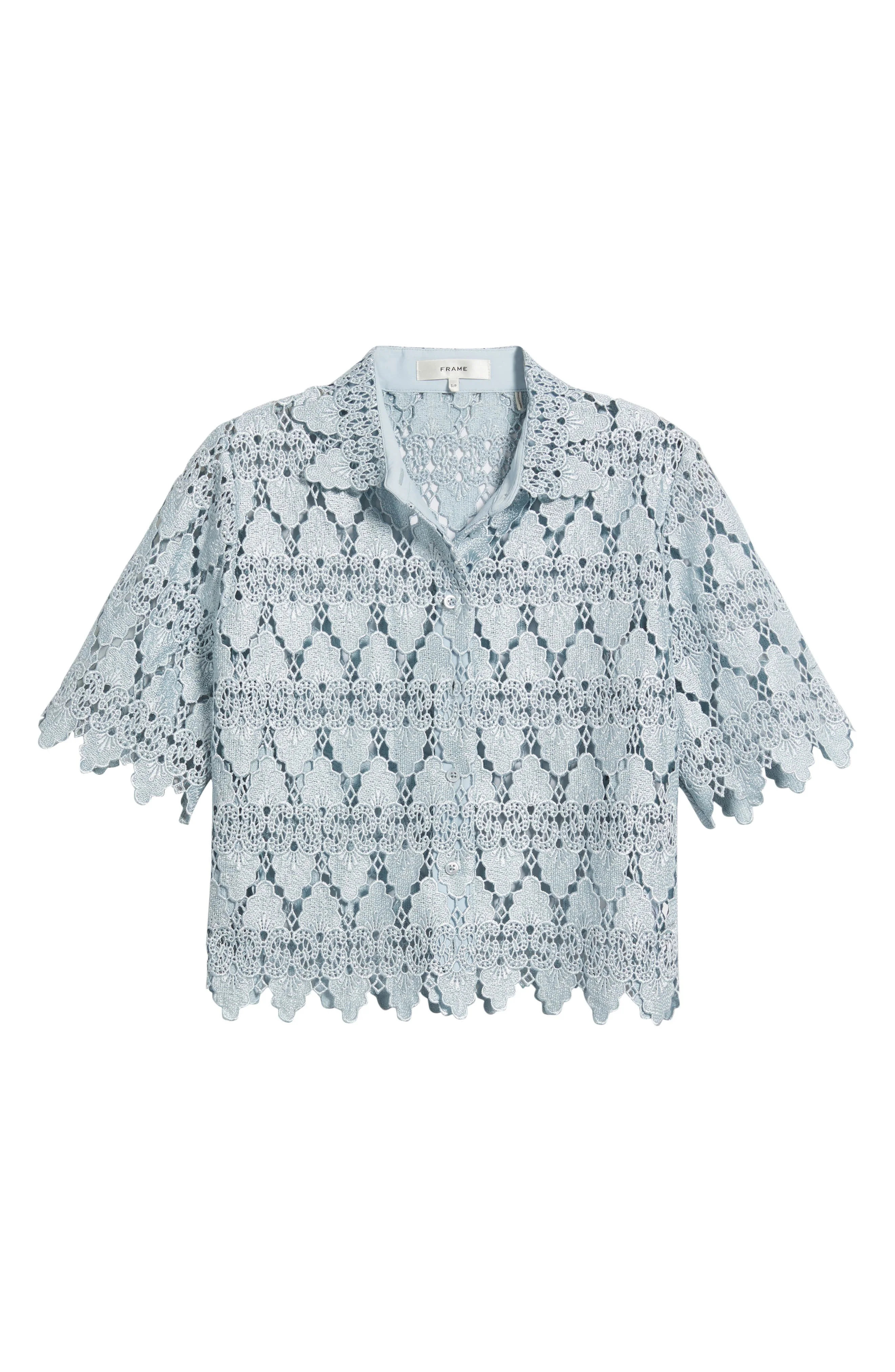 FRAME Lace Button-Up Shirt in Sky Blue at Nordstrom