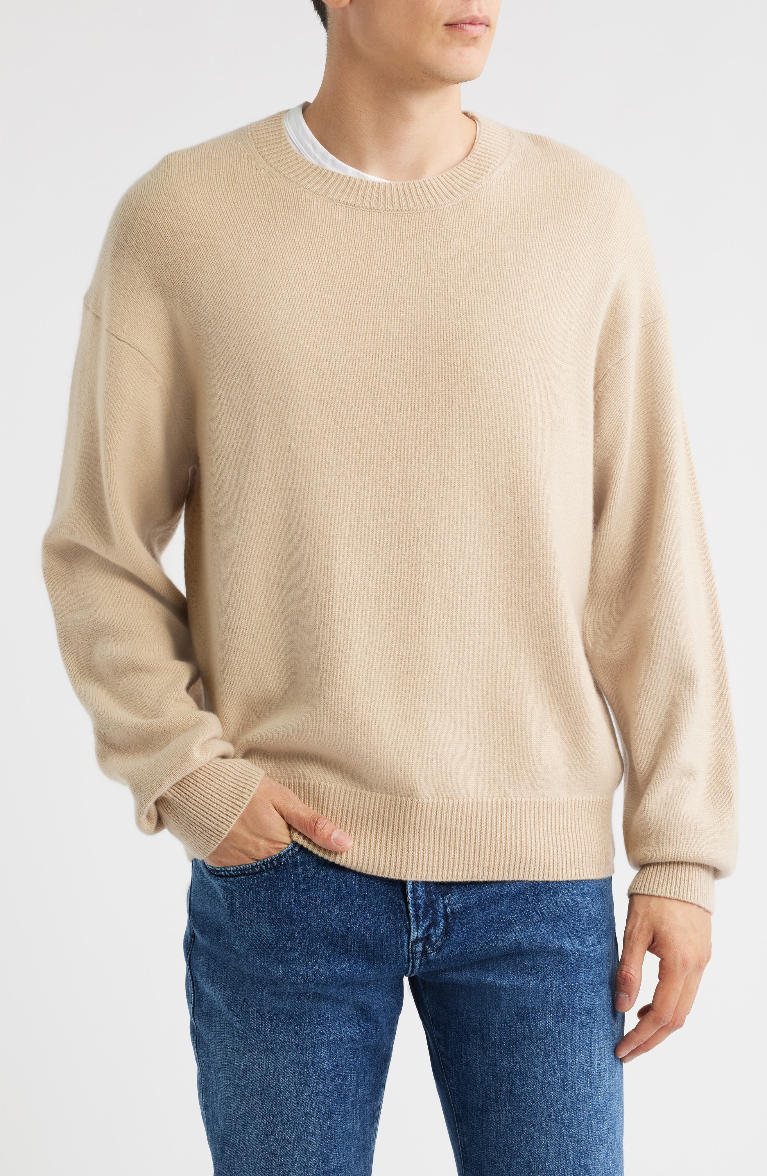 Light Weight Cashmere Crewneck in Summer Beige