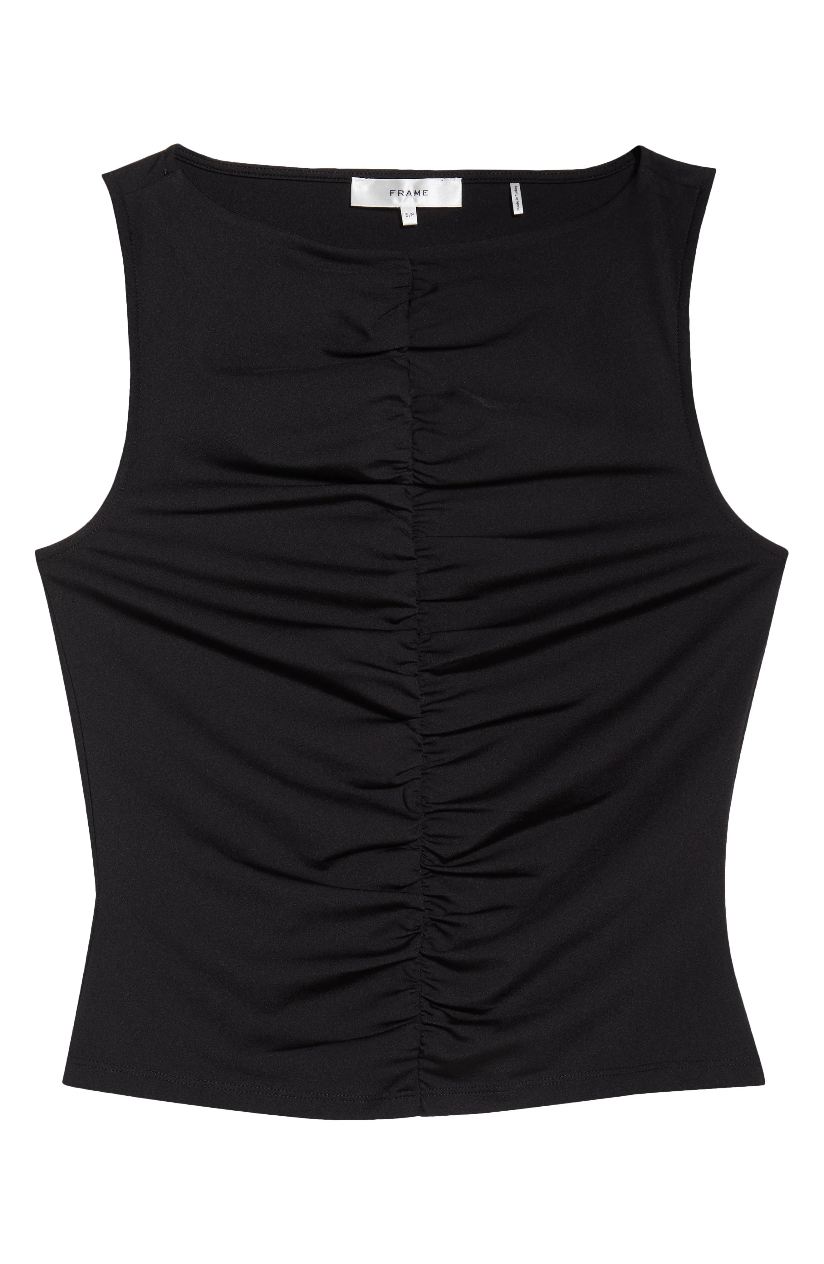 FRAME Ruched Sleeveless Top in Black at Nordstrom