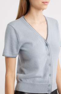 Contrasting mesh trim highlights the simple, versatile style of this luxuriously soft cashmere cardigan that's soft, lightweight and an essential layer in any season. Front button closure V-neck Short sleeves 100% cashmere Dry clean Imported