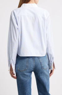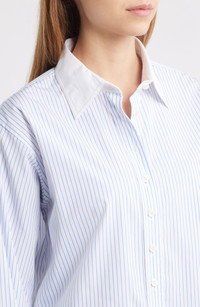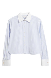 Named for stylish Charles Street in London, this button-up with crisp yarn-dyed stripes is updated with a boxy fit and finished with natty French cuffs secured by removable buttoned-chain links. Front button closure Spread collar Long sleeves with French cuffs 100% cotton Machine wash, tumble dry Imported