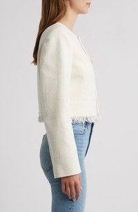 FRAME The Fringe Trim Tweed Jacket in White at Nordstrom
