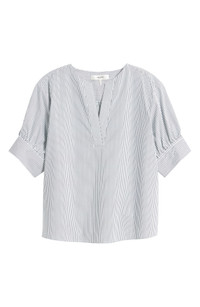 Stripe Split Neck Organic Cotton Popover Top