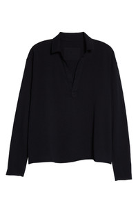 Made from the brand's nicely weighted heritage jersey, this casual top has raw edges and a cropped look without actually sacrificing any length or coverage. 25 1/2" length (size Medium) Spread collar Long sleeves 100% cotton Machine wash, tumble dry Made in the USA