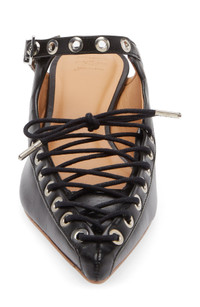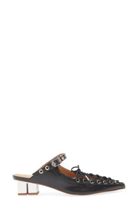 BLACK OLEATEX LACE-UP MULES