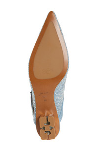 Gleaming grommet hardware and a sculptural block heel composed of four segmented cubes put an edgy spin on this traditional mule boasting an elongated pointy toe. Synthetic upper, lining and sole Made in Brazil