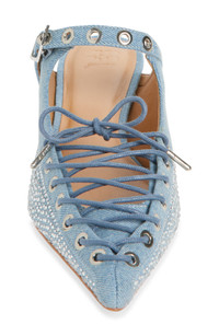 Ganni Eyelets Lace-Up Mule in Faded Denim at Nordstrom