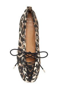 LEOPARD PRINTED DENIM EYELETS LACE UP BALLERINAS