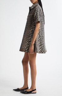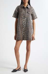 Ganni Leopard Stretch Organic Cotton Denim Minidress at Nordstrom