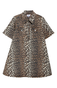 Comfortable stretch and an A-line silhouette enhance the roomy fit of this denim shirtdress updated in wild animal spots. Front button closure Spread collar Short sleeves Chest button-flap patch pockets 99% organic cotton, 1% elastane Machine wash, line dry Made in Turkey