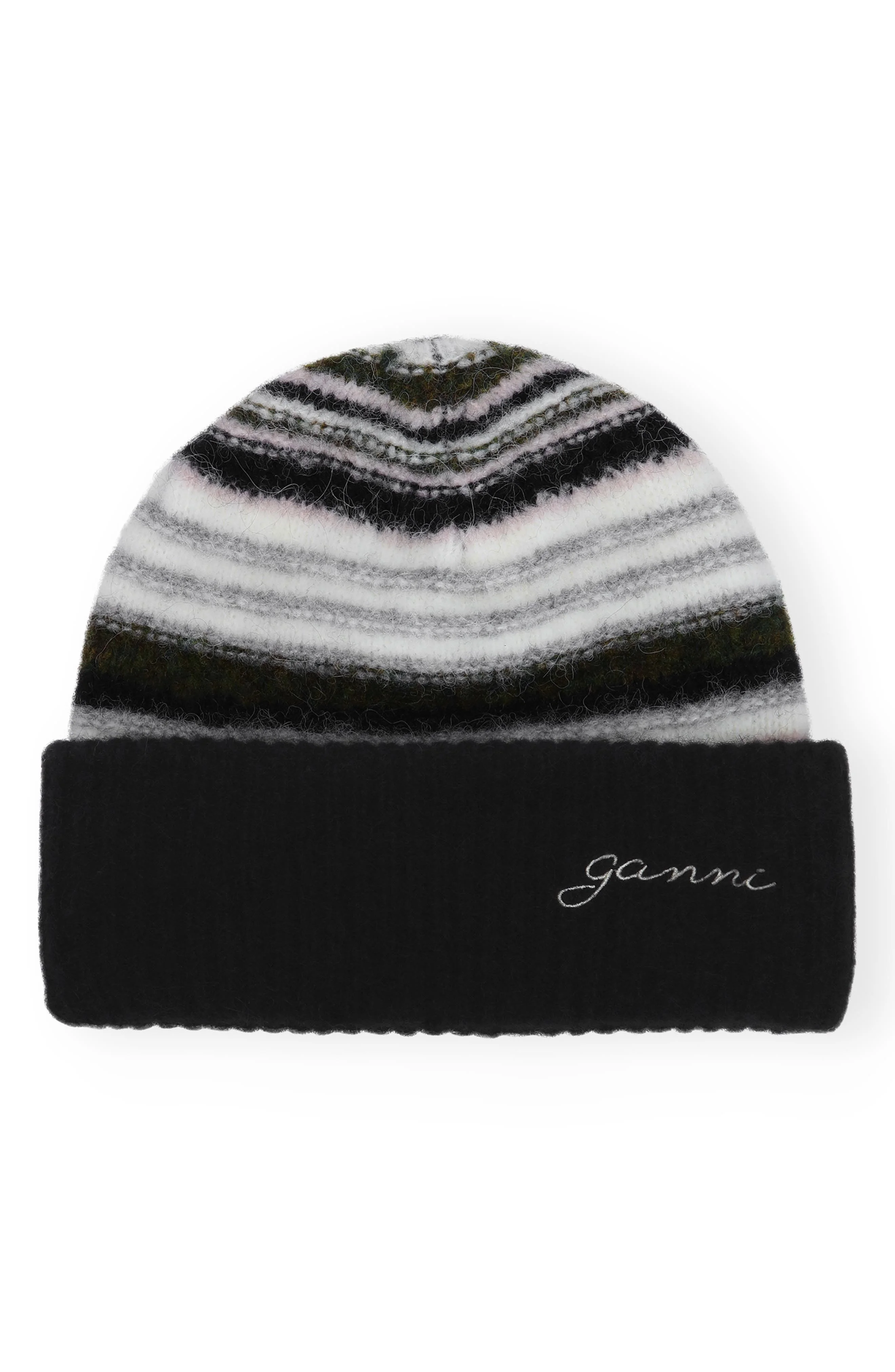 Ganni Stripe Alpaca & Wool Blend Beanie in Black at Nordstrom