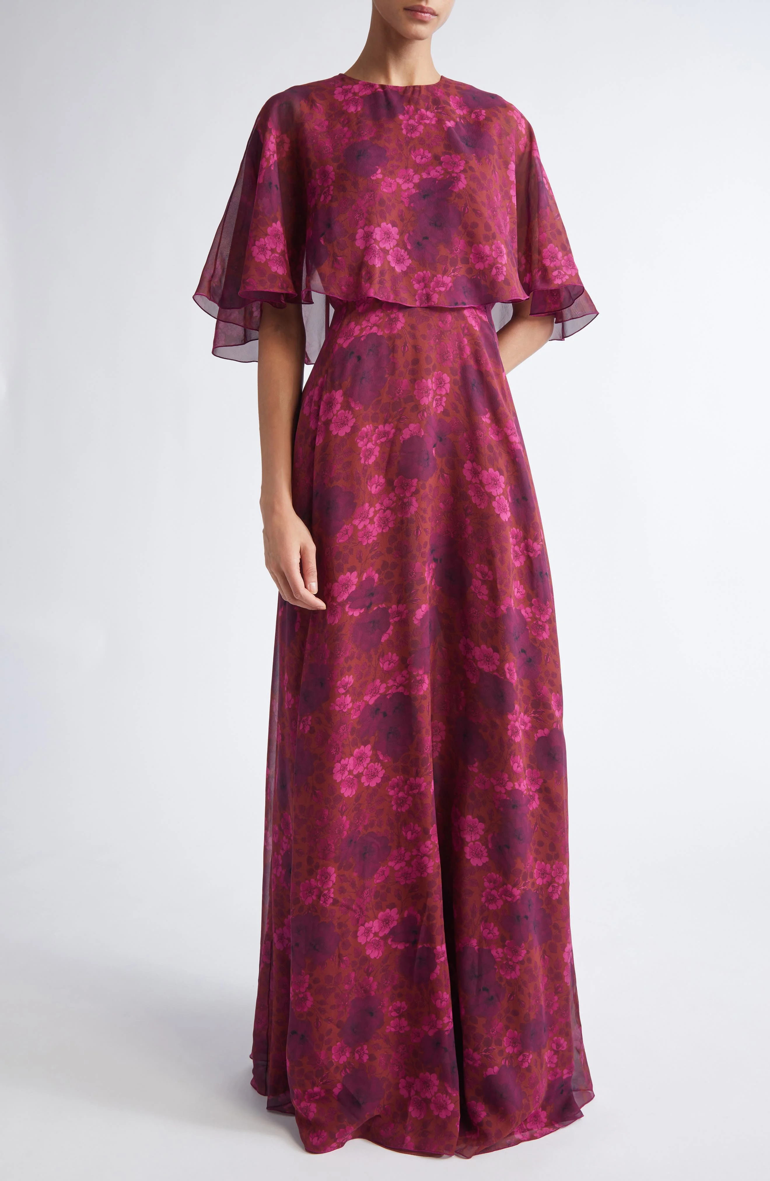 Giambattista Valli Anemones Cape Bodice Silk Georgette Dress in Brick Multi at Nordstrom