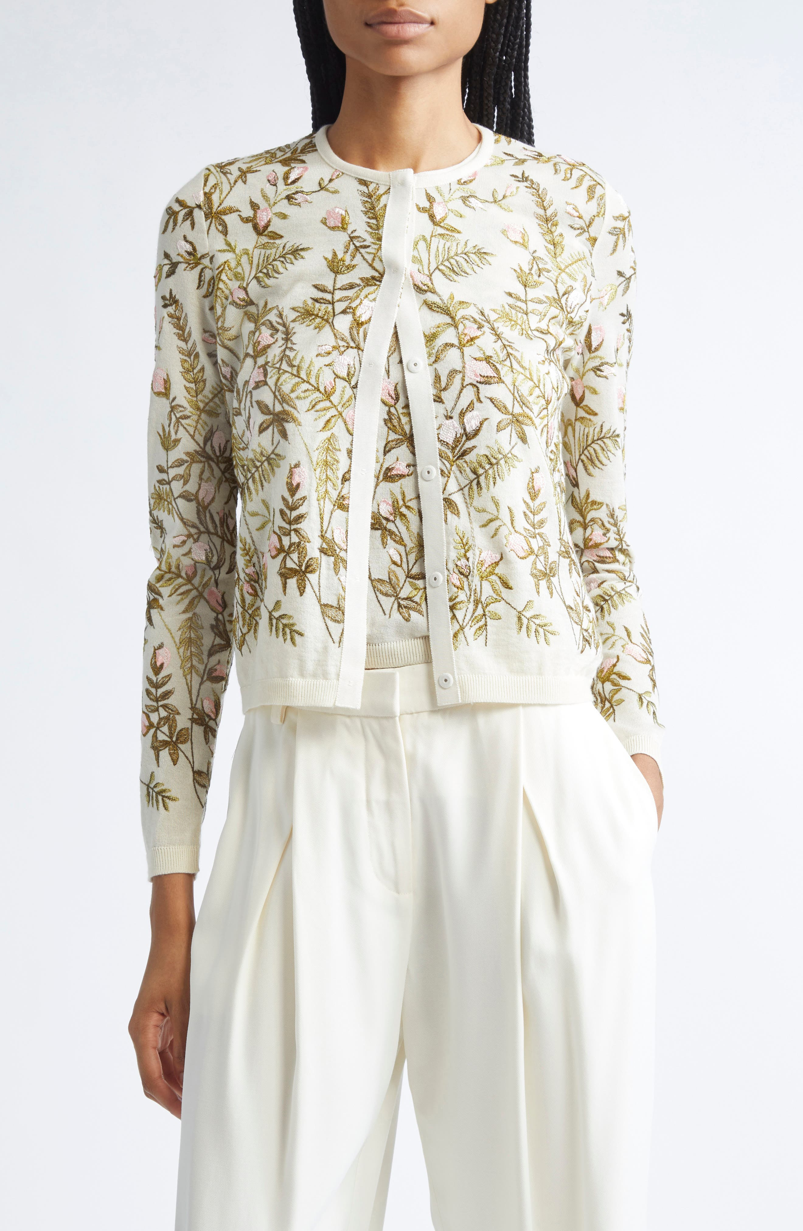 Giambattista Valli Floral Embroidered Cashmere & Silk Cardigan in Ivory at Nordstrom