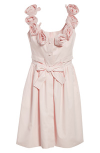 Tonal rosettes romance the scoop neck of this cotton-poplin mini designed in a fit-and-flare silhouette sweetly finished with a front bow. Hidden back-zip closure Scoop neck Sleeveless 100% cotton Dry clean Made in Italy Designer Clothing