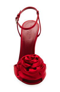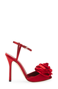 Your admirers can eschew throwing roses at your feet when you have this satin ankle-strap sandal adorned with a prominently oversized rosette. 4 1/4" (108mm) heel Adjustable ankle strap with buckle closure Textile upper/leather lining and sole Made in Italy Designer Shoes