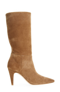 A honed pointed toe and tapered heel frame an understated boot crafted in Italy from velvety suede. 3 1/4" (85mm) heel (size 37) Pull-on style Leather upper, lining and sole Made in Italy Designer Shoes