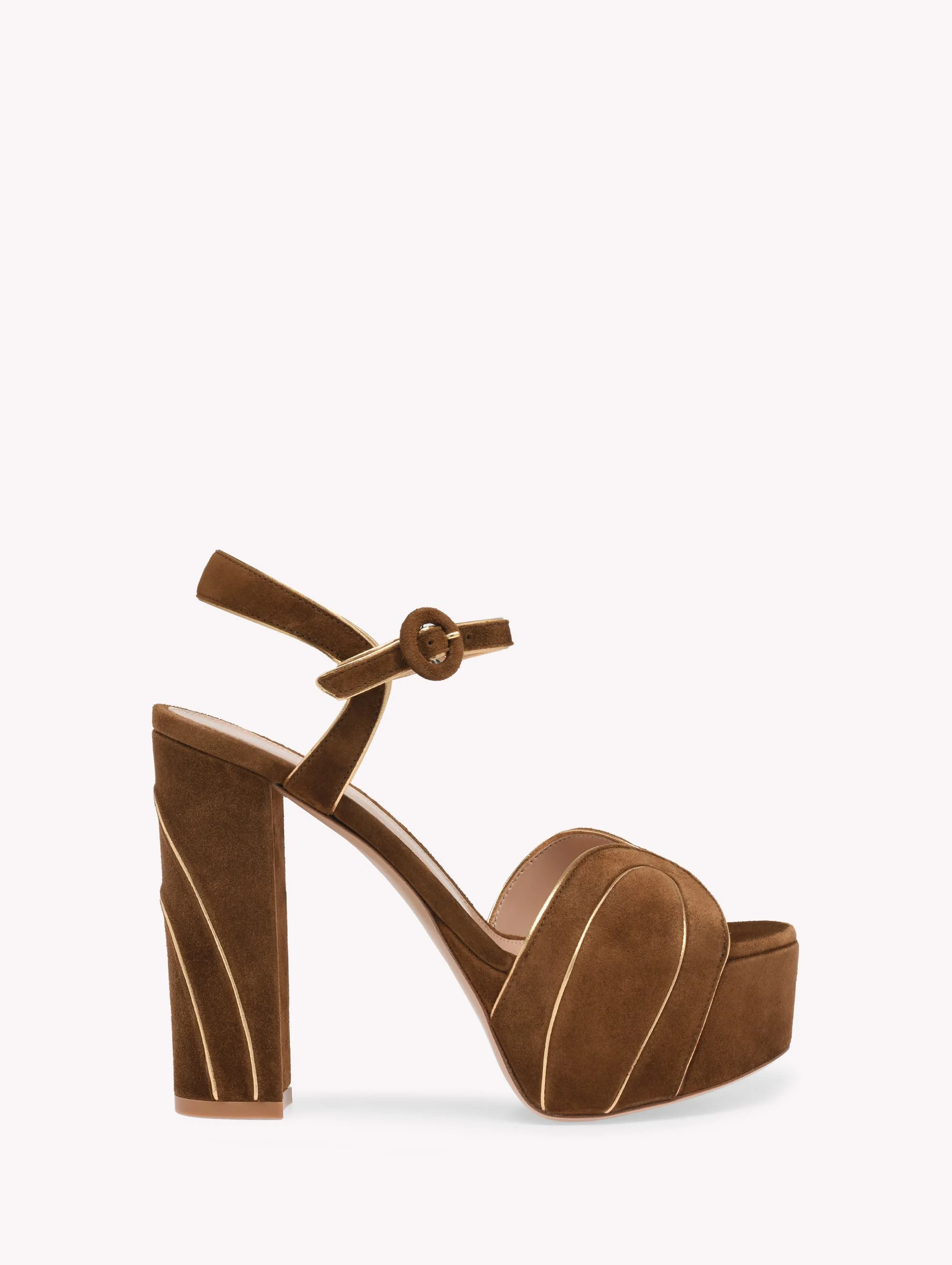 Gianvito Rossi Tamara Sandals in Brown Suede And Nappa at Nordstrom
