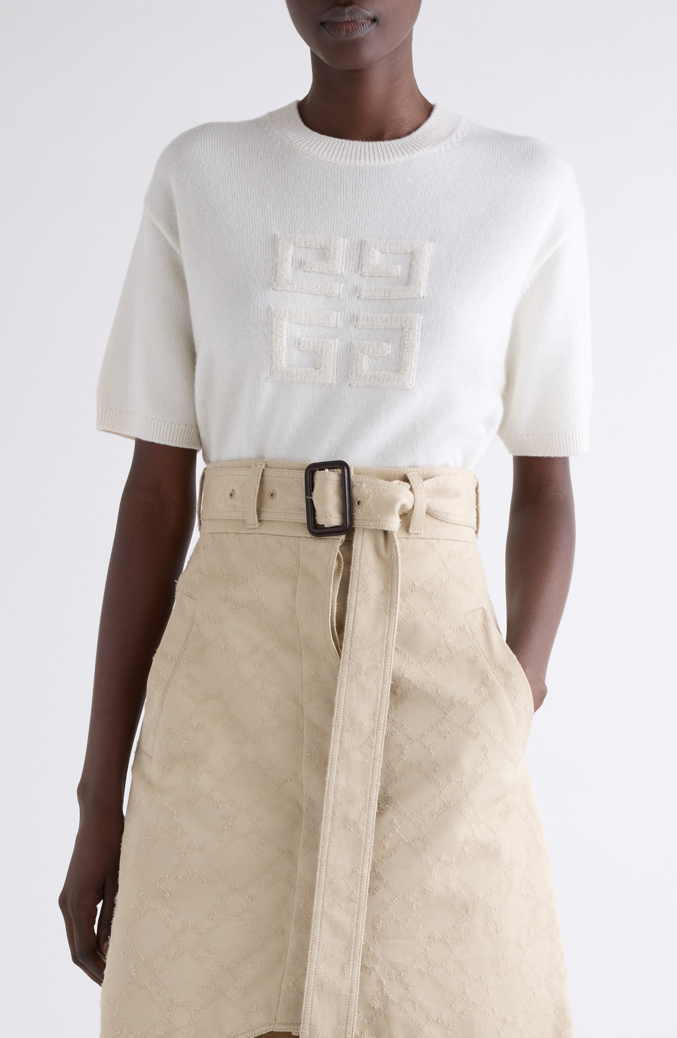 Givenchy 4G Logo Short Sleeve Cashmere Sweater in White/Beige at Nordstrom