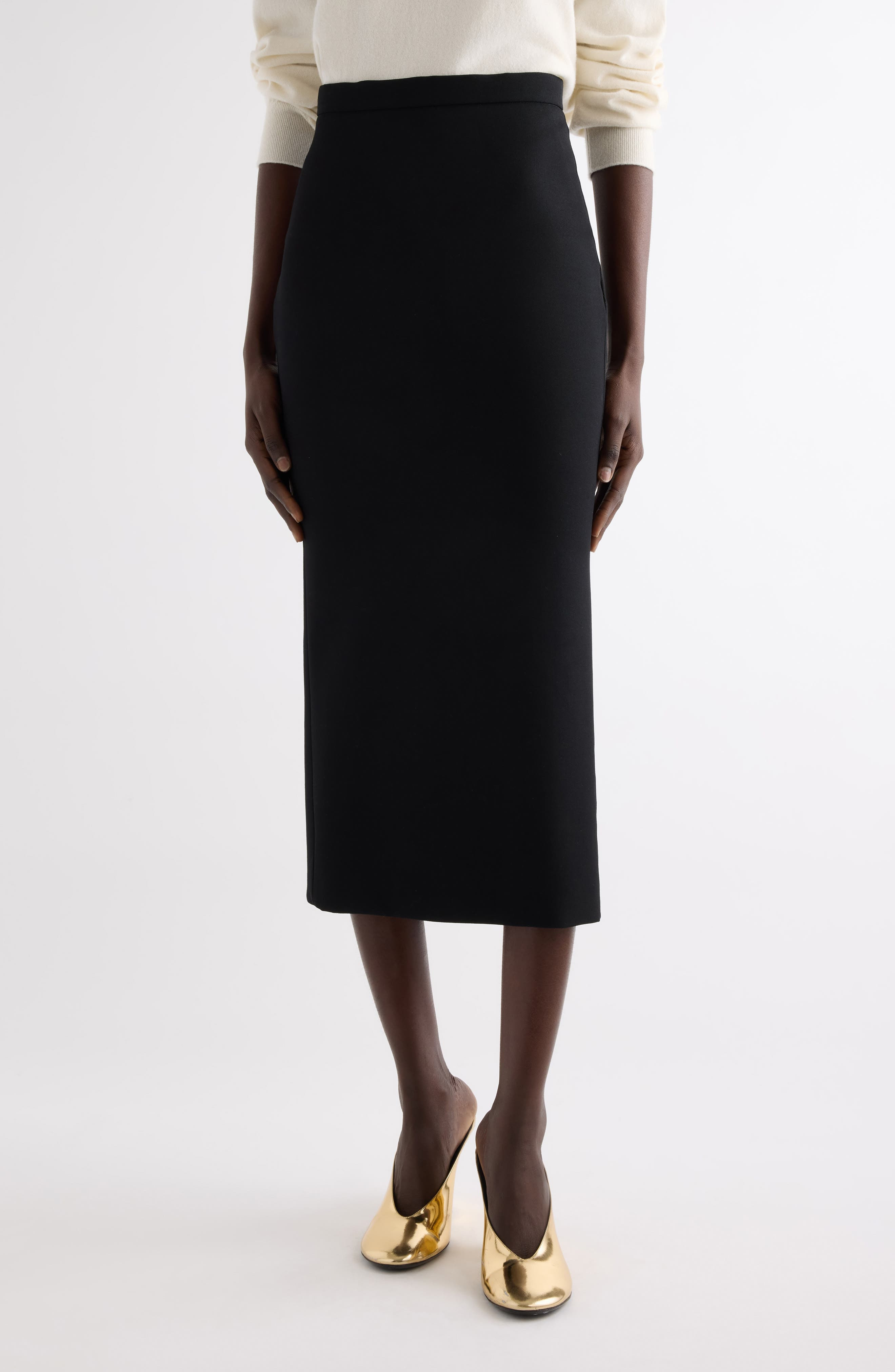 A back godet adds kicky flare to this polished midi skirt fashioned from fluid crepe cady. Back zip closure 65% viscose, 32% acetate, 3% elastane Dry clean Made in Italy Designer Clothing