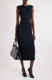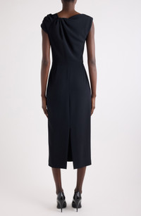 A twisted detail at the shoulder brings asymmetric drape to this sleek pencil dress made from crepe cady that complements the tailored aesthetic. Hidden side-zip closure Asymmetric neck Single cap sleeve Back slit 65% viscose, 32% acetate, 3% elastane Dry clean Made in Italy Designer Clothing