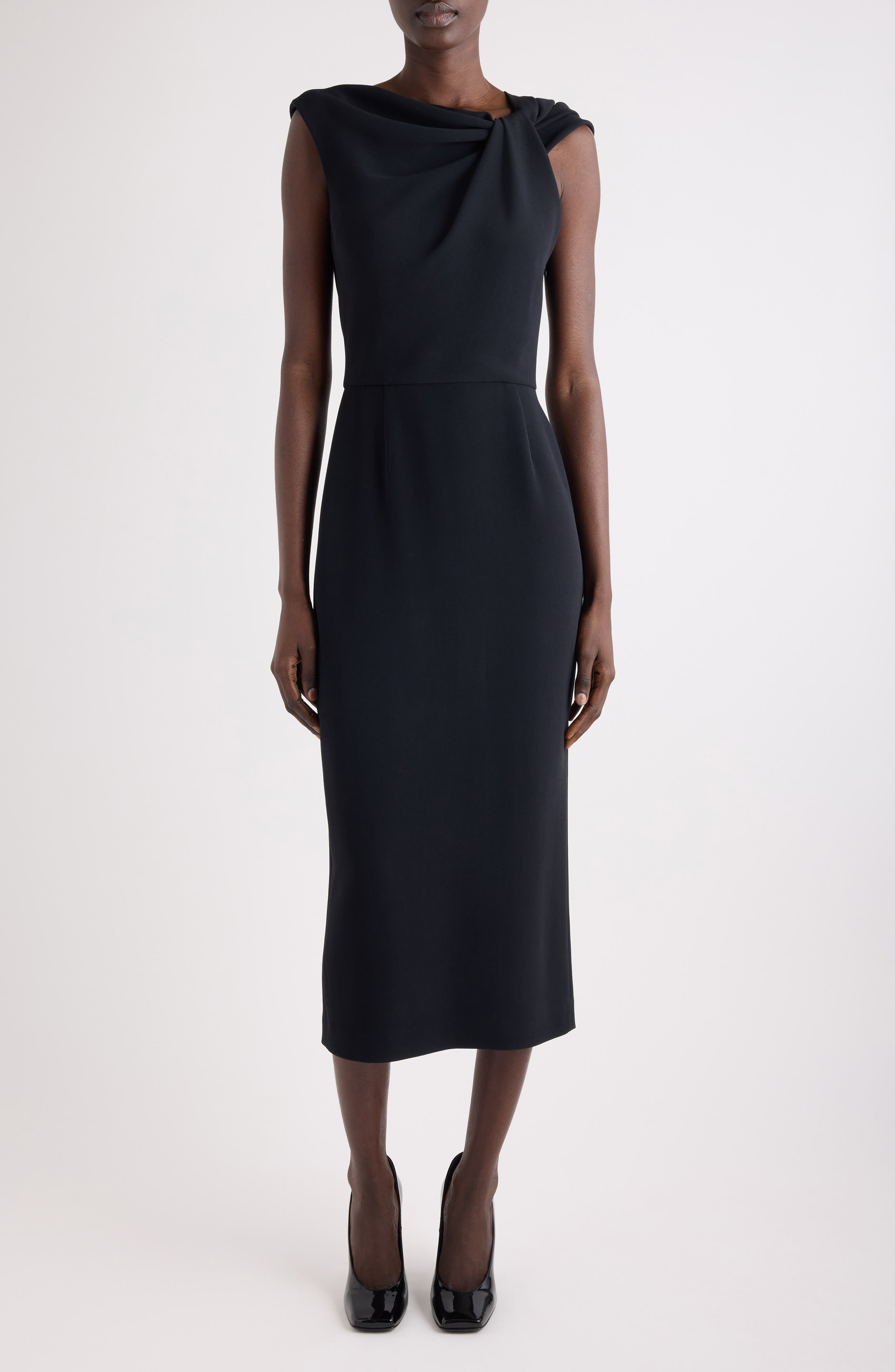 Givenchy Draped Crepe Cady Midi Pencil Dress in Black at Nordstrom