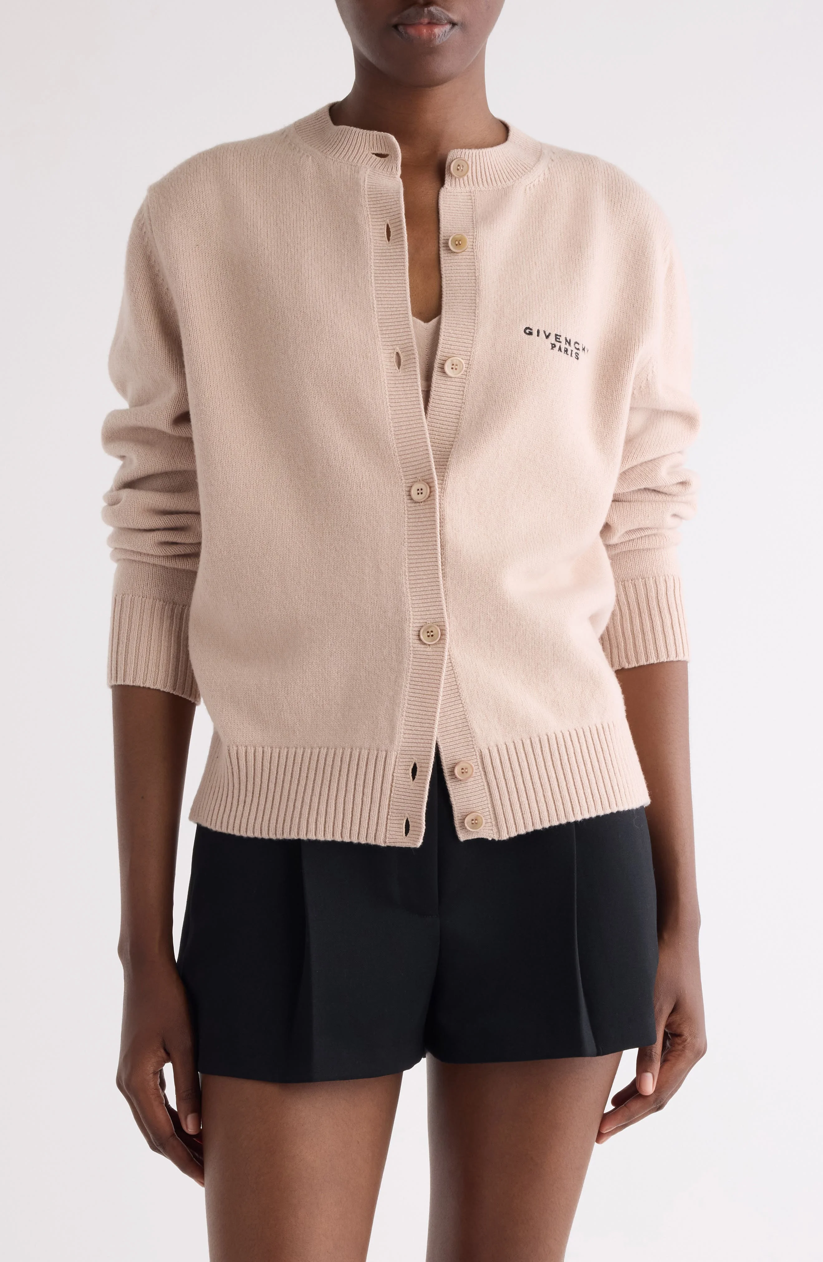 Givenchy Embroidered Logo Wool & Cashmere Cardigan in Light Pink at Nordstrom