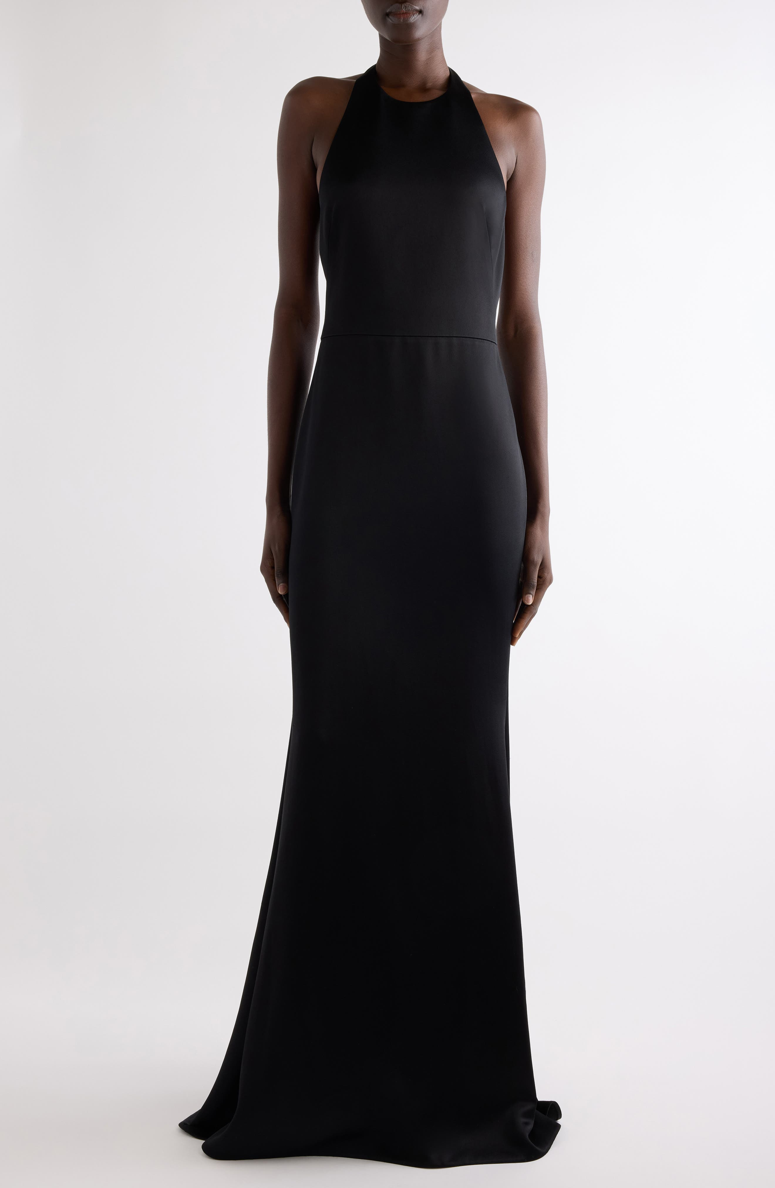 Givenchy Halter Neck Crepe Back Satin Gown in Black at Nordstrom