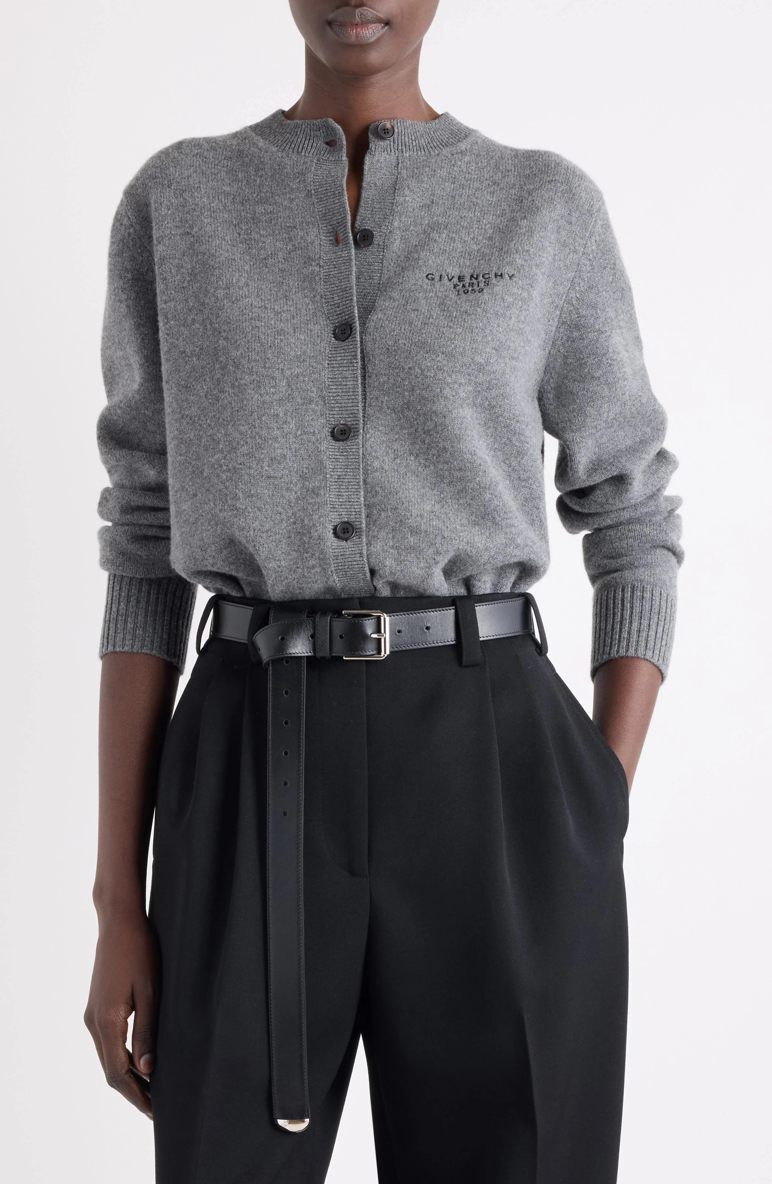 Givenchy Logo Embroidered Wool & Cashmere Cardigan in Slate Blend at Nordstrom