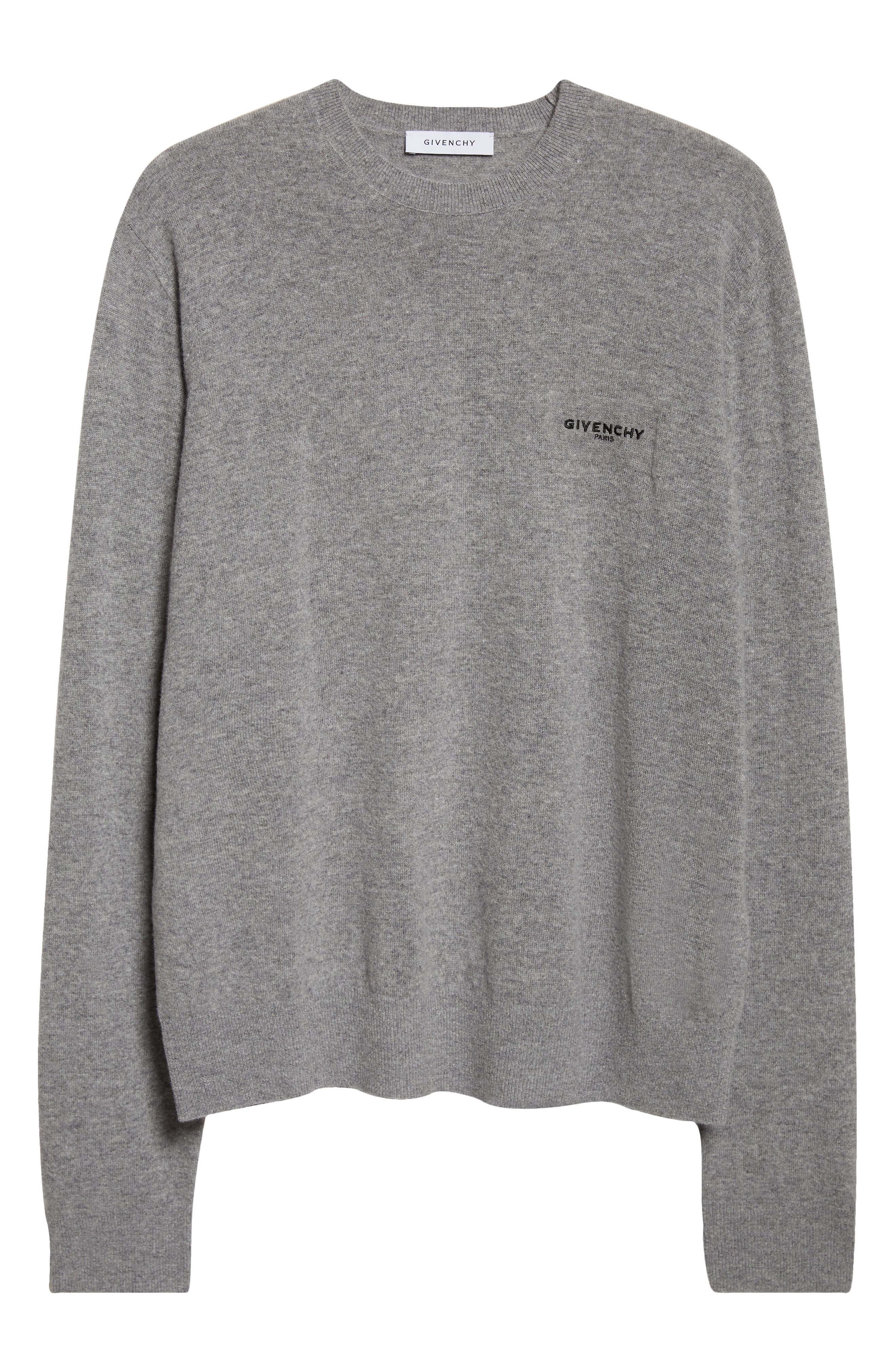 Givenchy Logo Embroidered Wool & Cashmere Crewneck Sweater in Light Grey Melange at Nordstrom