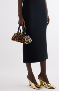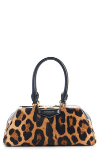 This elongated and scaled-down iteration of the Antigona satchel is made from leopard-print calf hair and folded with the style's origami-inspired gussets. Two-way top-zip closure Top carry handles; removable, adjustable shoulder strap Interior card slot Structured silhouette with flat base for stability Lined Genuine calf hair/leather Made in Italy Designer Handbags