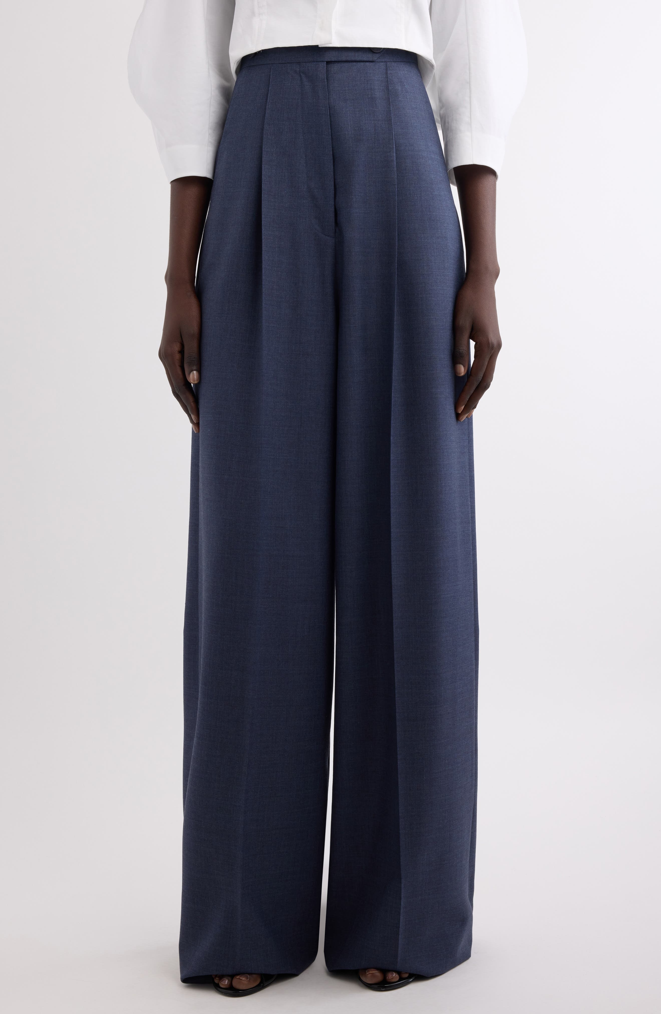 Givenchy Pleated Wool Wide Leg Pants in Denim Blue at Nordstrom