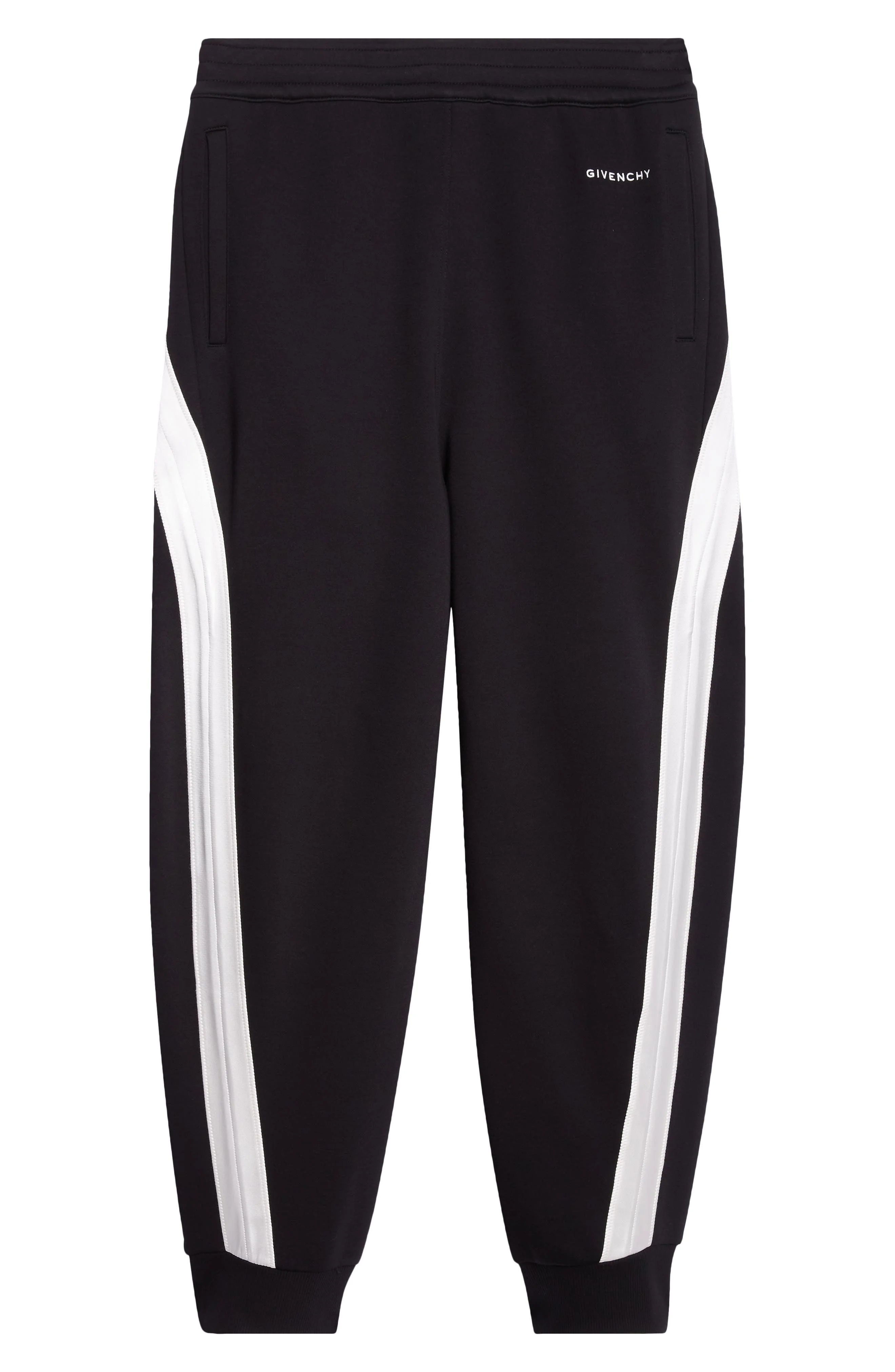 Taking cues from black-and-white snapshots of Givenchy's 1952 debut, designer Sarah Burton contemplates unfussy staples for her own inaugural outing at the storied French fashion house. One result: these scuba-knit joggers with bias-cut seams that create softly sculpted volume—a modern take on the cocoon shape popularized in the '50s. Bands of silk-rich satin stand in for standard track stripes. Elastic waist Side welt pockets 86% cotton, 14% polyamide, with 70% silk, 30% polyester contrast Dry clean Made in Italy Designer Clothing