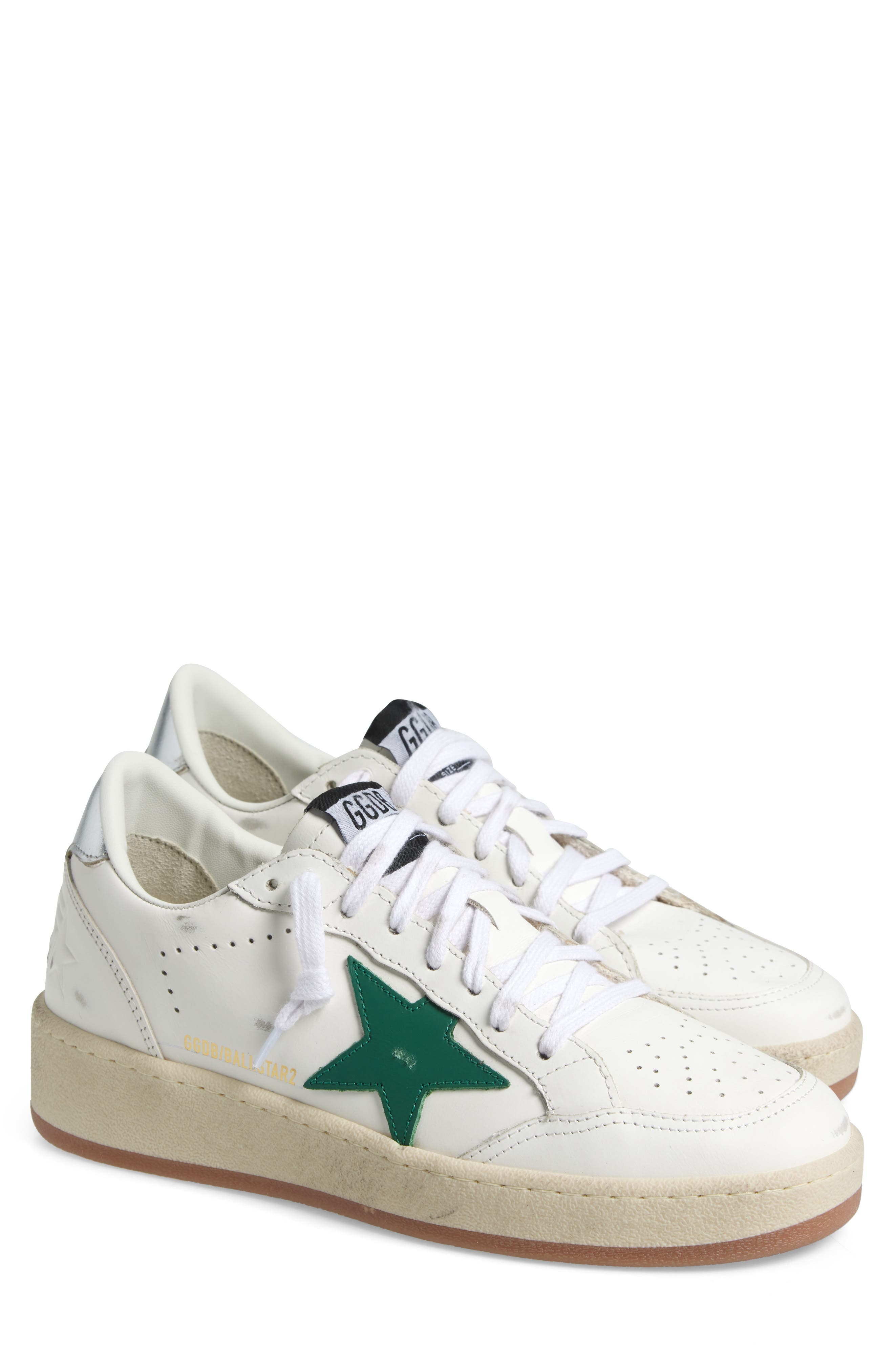 Golden Goose Ball Star 2 Low Top Sneaker in White/Green/Silver at Nordstrom