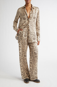 Golden Goose Floral Print Silk Blend Pajama Pants in Safari/Black at Nordstrom