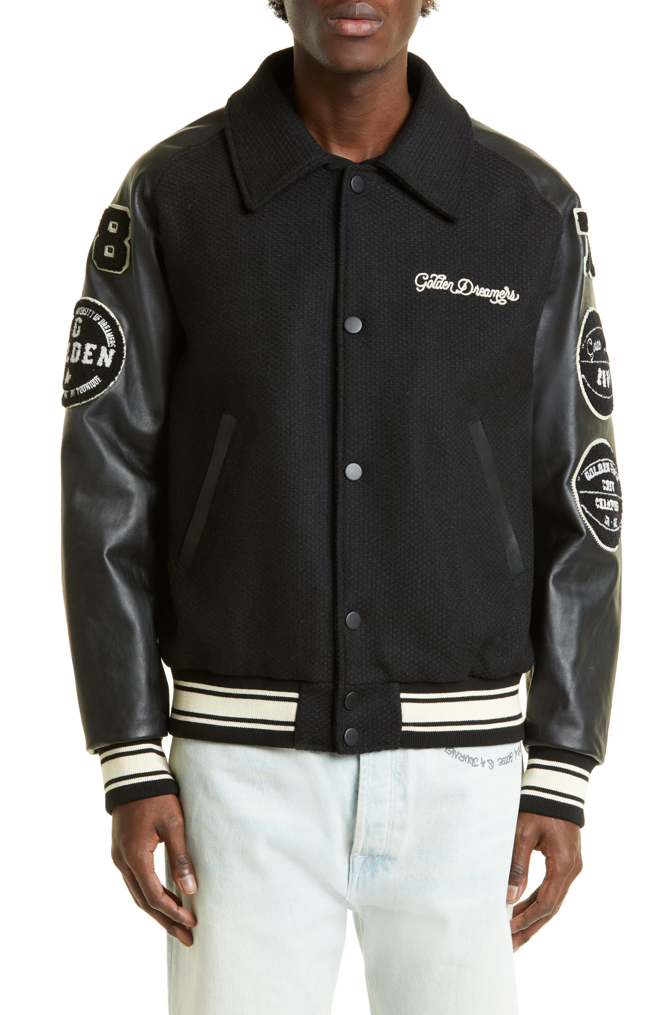 Golden Goose Golden Dreamers Wool & Leather Letterman's Jacket in Black at Nordstrom