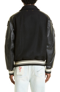 Dream-team vibes radiate from this jacket styled with leather raglan sleeves and lots of varsity-level brand iconography by way of patches and partial stars. Front snap closure Spread collar Front slant pockets Ribbed cuffs and hem Cotton lining 100% virgin wool with leather and 100% polyester and 50% acrylic, 50% wool contrasts Professional leather clean Made in Italy Men's Designer Clothing