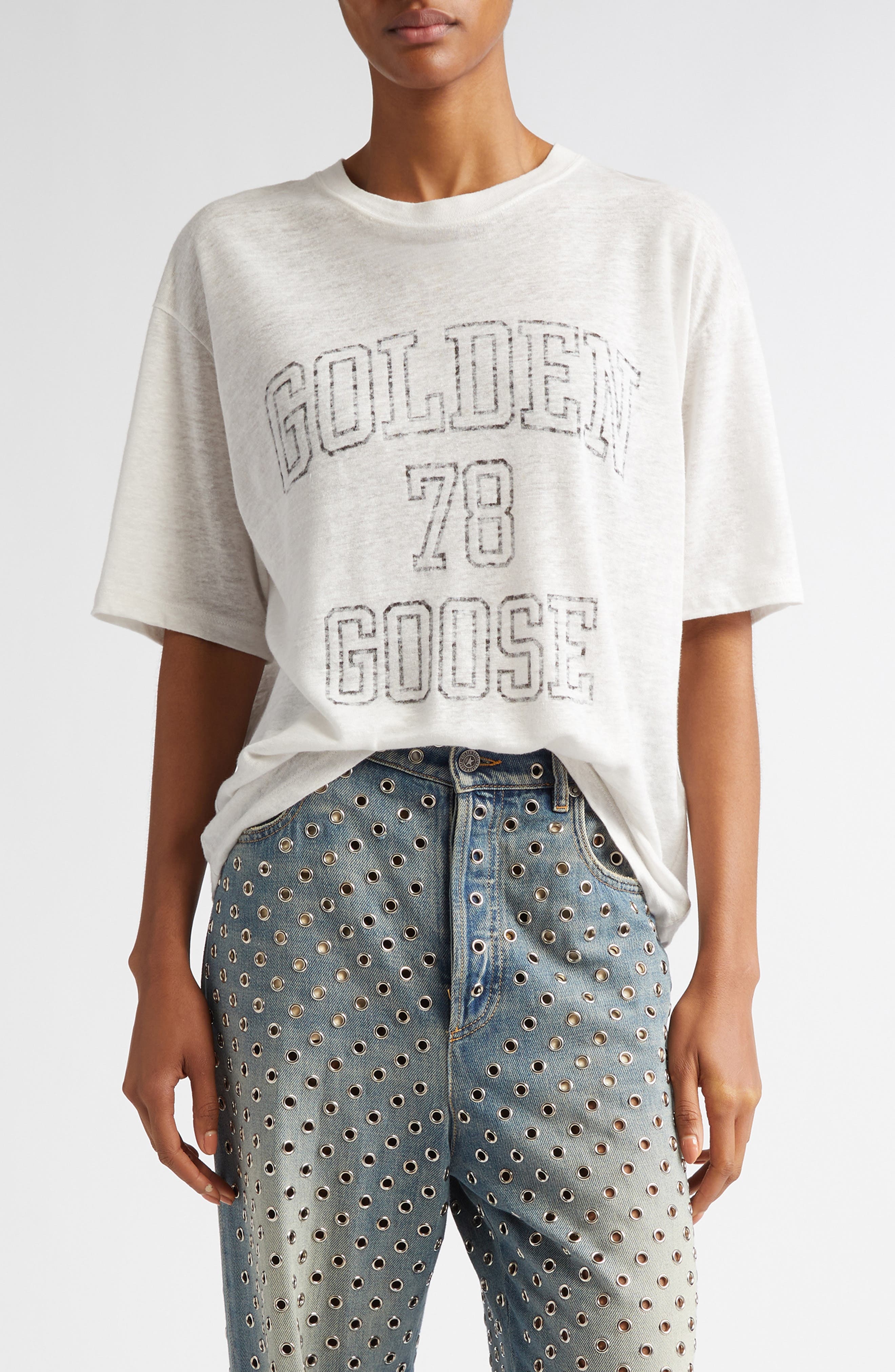 Golden Goose Journey Boxy Linen Graphic T-Shirt in Heritage White/Black at Nordstrom