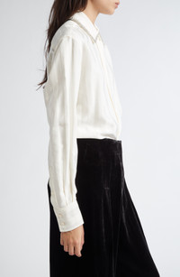Golden Goose Journey Embellished Collar Tonal Stripe Button-Up Shirt in Papyrus at Nordstrom