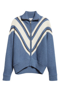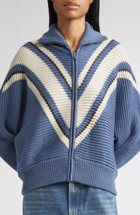 Golden Goose Journey Odilia Chevron Stripe Virgin Wool Zip Cardigan in Dutch Blue/Natural White at N