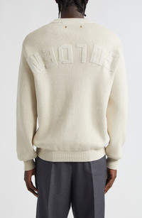 A nod to ’90s irreverence, this crewneck sweater is knit from a soft, stretchy cotton blend and turns tradition on its head—literally—with a tonal upside-down, reversed logo sprawled across the back. The label’s signature double stars at the nape add a subtle but unmistakable mark of distinction. Crewneck Long sleeves Ribbed cuffs and hem 96% cotton, 3% polyamide, 1% spandex Dry clean Made in Italy Designer Clothing