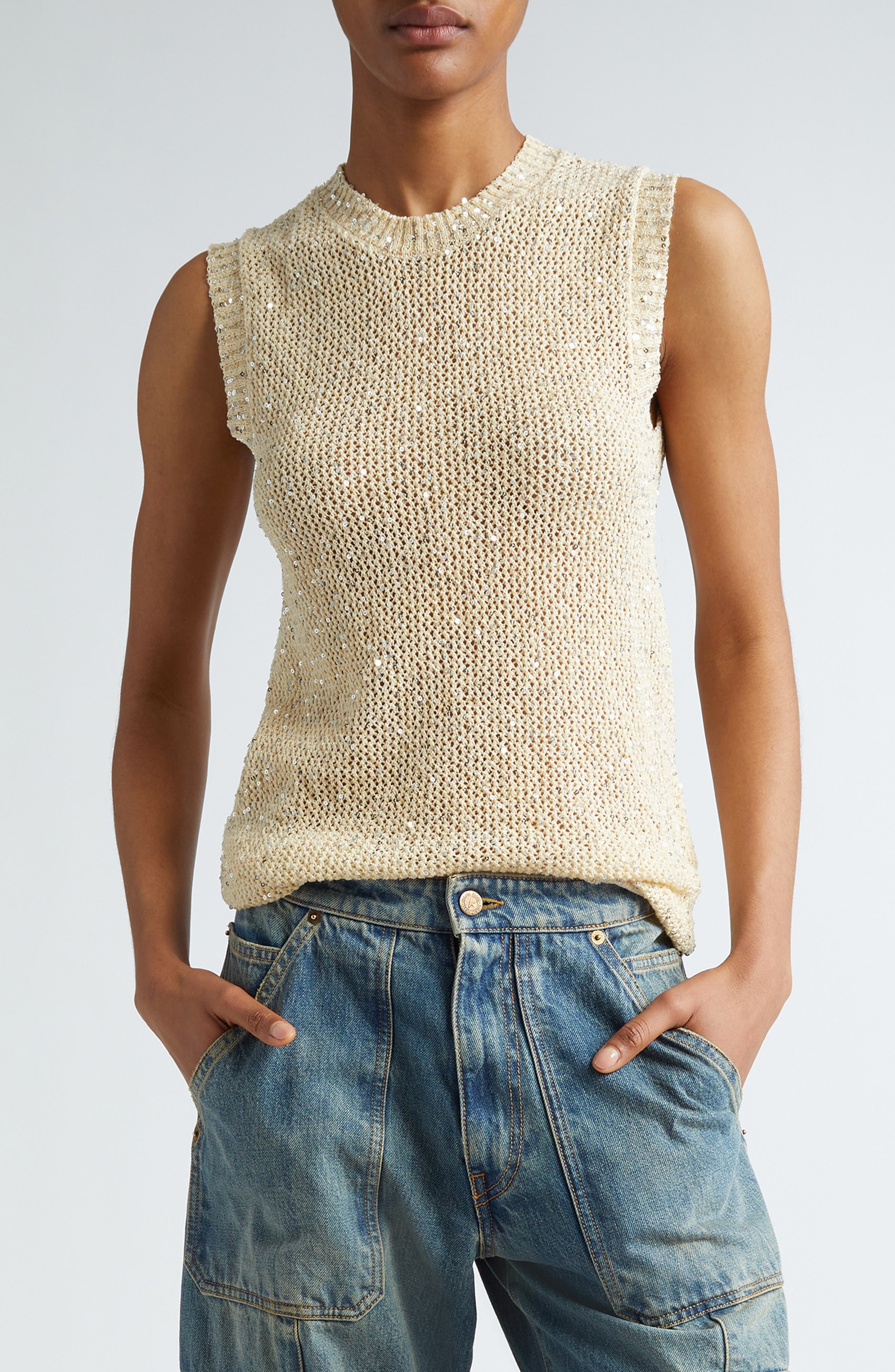 Golden Goose Journey Sequin Sleeveless Sweater in Heritage White at Nordstrom