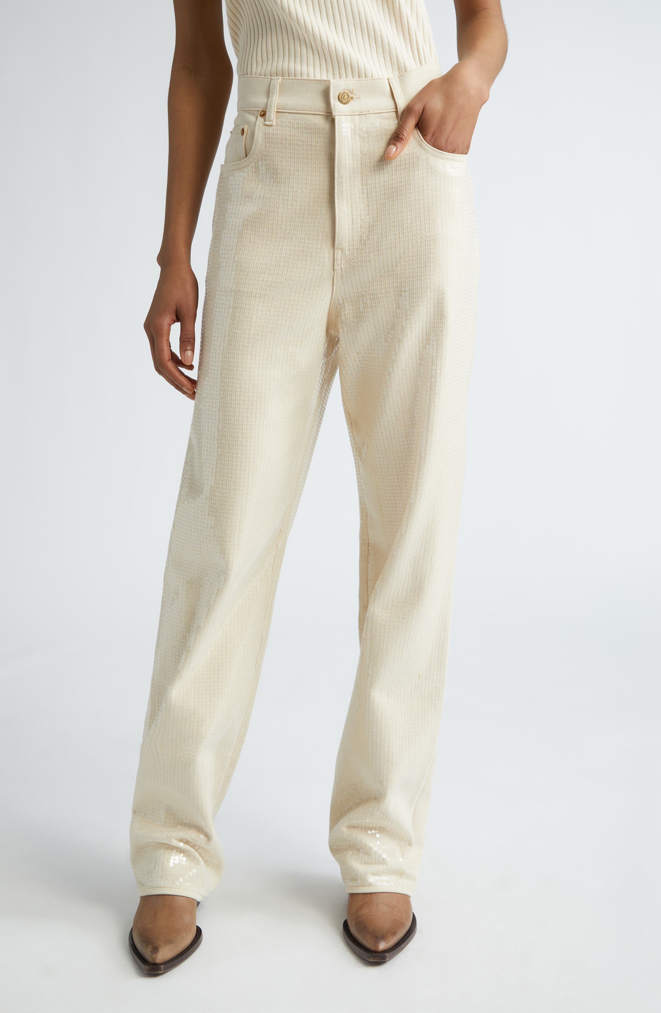 Golden Goose Kim Sequin Five-Pocket Pants in Ecru at Nordstrom